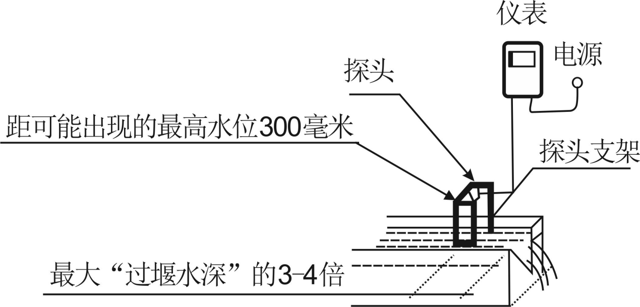 探头发射面要对准水面,并且跟水面垂直。可以用水平尺放在探头上盖上,通过校上盖水平使探头对准水面。巴歇尔槽水位观测点在距槽上游0.1~0.5米位置;三角堰、矩形堰在上游一侧,距堰板3~4倍zui大过堰水深处。