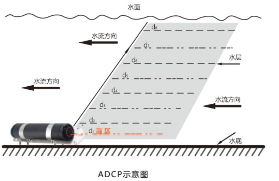 多普勒流速剖面仪利用多普勒效应某一个声源(超声波)发出的声波被另一个接收体(水中的悬浮物)反射如果该声源相对于接收体是移动的,接收体接收到的声波频率将会与声源的发射频率有差异测量频差,可计算得到水流的速度。超声波传播距离,与超声波频率有关,与水中的悬浮颗粒的含量有关,含沙量仅仅吸收声能,并不改变超声波的传播速度和多普勒频移,所以并不影响测量精度。