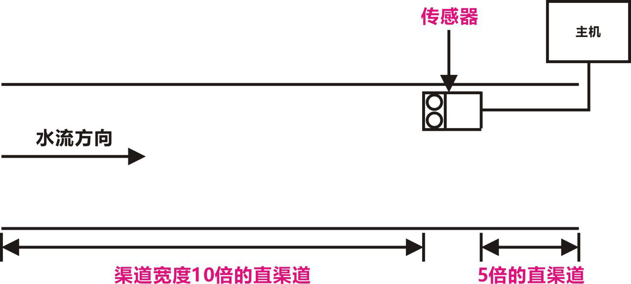安装点上游有10倍宽度的直渠道,下游有5倍宽度的直渠道。