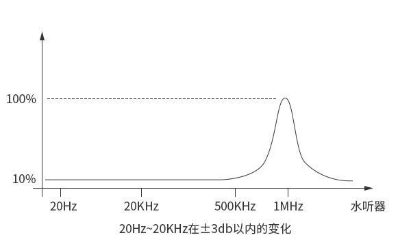 水听器,在到达1Mhz时,前期都是属于平稳状态,也就是灵敏度越平稳,信号越弱,大概只能达到20%的接收信号强度。当达到最高点时,信号能达到100%。