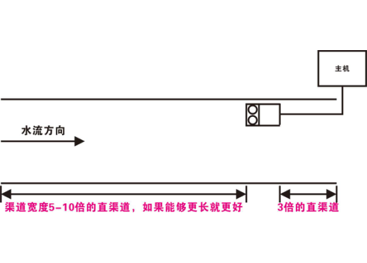 要选择水流平稳处测量,流量计安装地点的上游有渠道宽度10倍的直渠道,下游有3倍的直渠道。上游直渠道的长度越长越好。