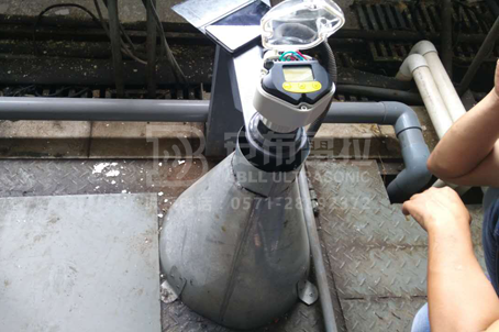 凯越一体式超声波液位计在现场用喇叭口测量水位