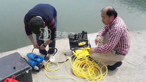 这是工程师用水声通信搭载水下摄像机器人在水库做测试,为了实现无缆控制。