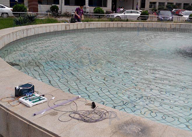 在上图的水池中,我们两个发射设备之间直接测量,发送和接收数据正常。然后隔着假山测量。假山周围的水是想通的。如下图: