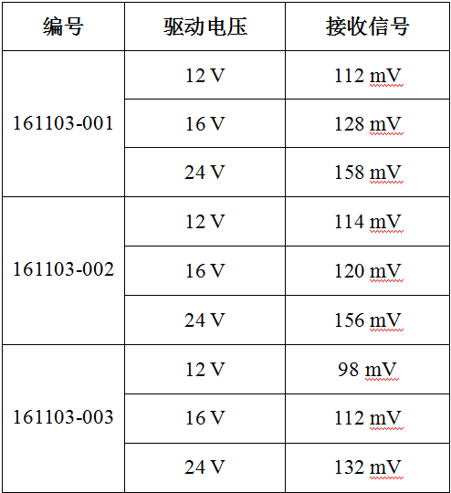 表1中“接收信号”一栏数据是换能器不经过放大电路直接接收得到的信号强度
