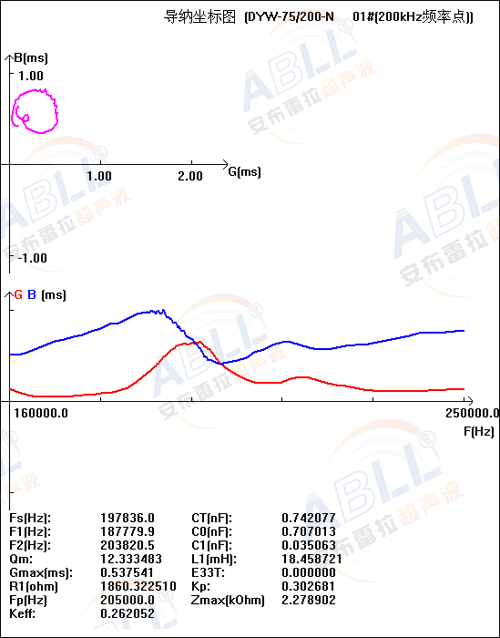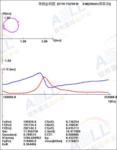 图12:161103-001号换能器200KHz频率点导纳曲线
