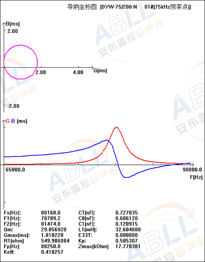 图17:161103-003号换能器75KHz频率点导纳曲线