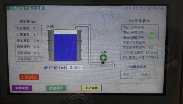 本来这是一个比较常见的应用,在城市的污水泵站经常用。但是现场为了安全,不允许铺设电缆,要用无线传输,而且在山下水泵房不光是能够显示山上水池液位的变化,要能够输出4路继电器来控制2台水泵的启动和停止,还要输出1路4-20ma信号给别的PLC系统用。这个要求就不是一般的太阳能无线超声波液位计能够达到的。