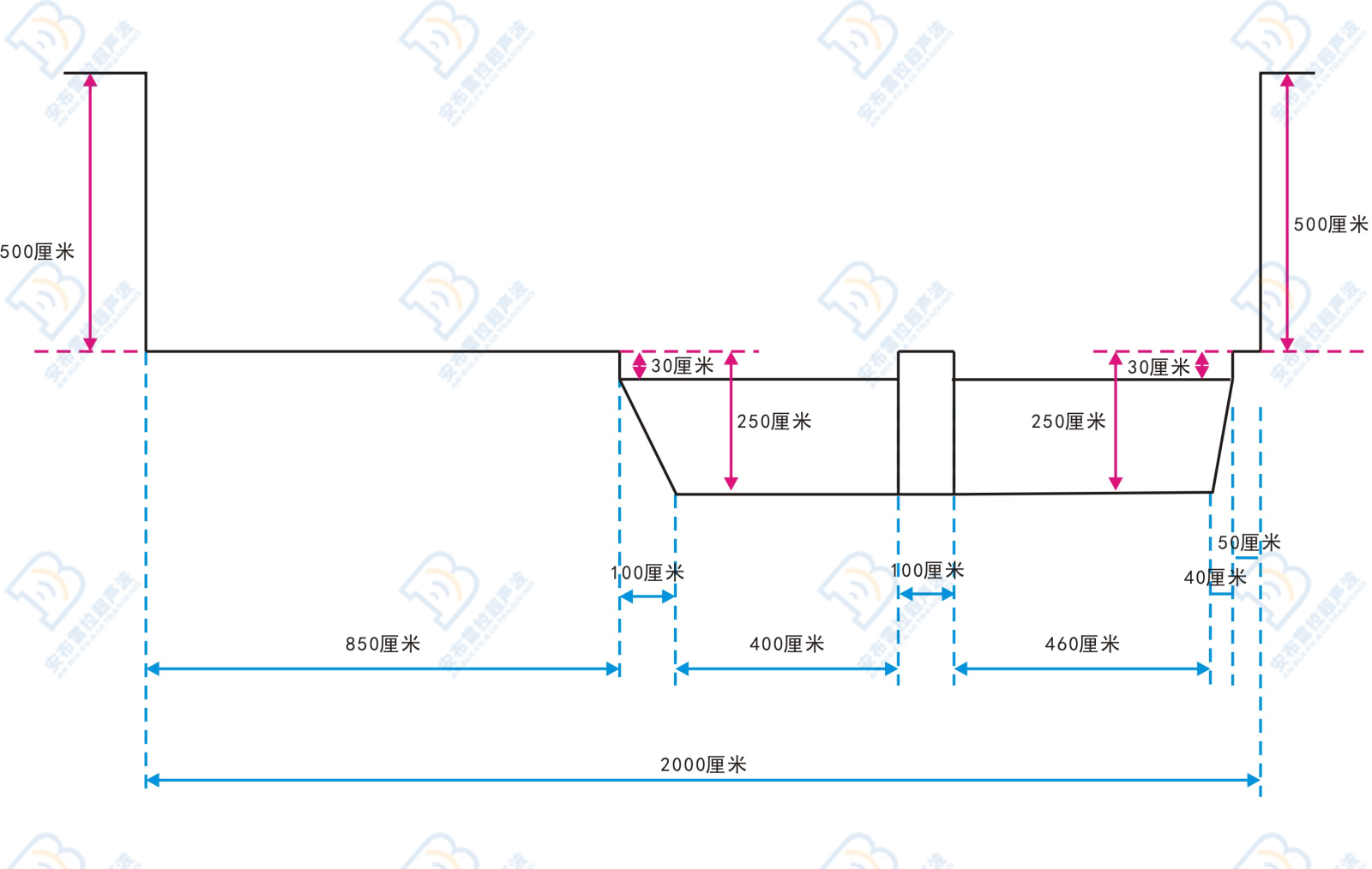 长沙县星沙污水处理厂污水溢流流量测量-截面尺寸图