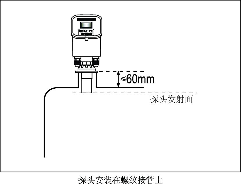 安装在跟探头一样的螺纹接管上,在这种情况下,接管的内径大小跟探头的外螺纹几乎一样,探头的发射面必须伸出接管2cm以上,不能缩在接管内。