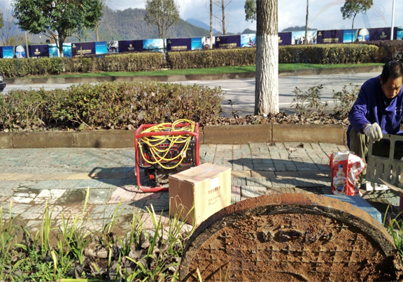 千岛湖镇是个旅游胜地,同时也遭受降雨对生活和工作的影响,这是在阳光路上安装《井下通》超声波下水道液位计,监测下水道水位情况。