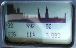 上图中,左图是原图,右图我用红色圈出来的部分是很大的一片毛刺,是电磁干扰形成的,回波图中的没有明显的反射波,整个基线上面有很多毛刺,这就是一种电磁干扰。图中基线下面第一行3个数字,第二行前2个数字都是0.表示从探头回来的波被覆盖了。